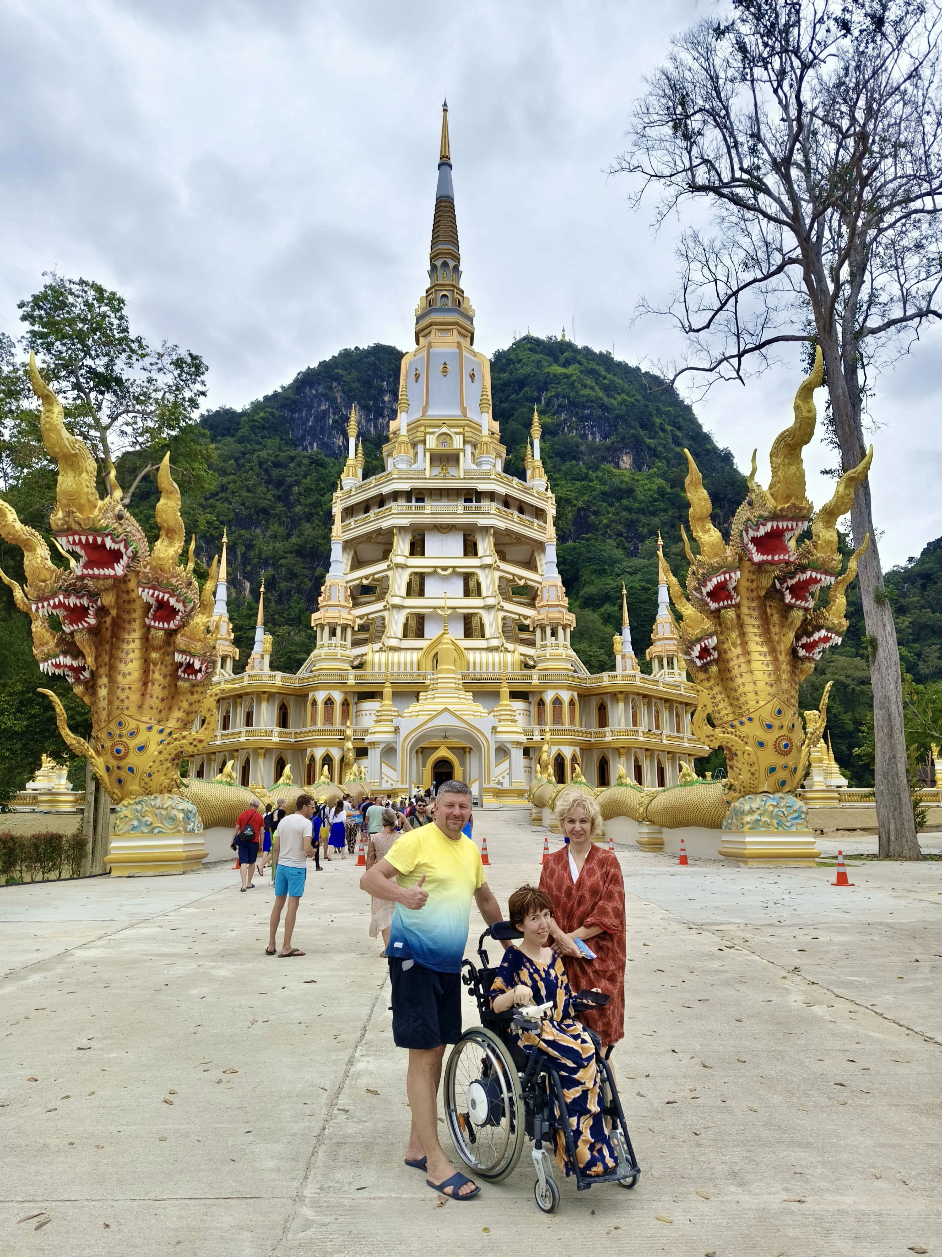 Byliśmy też w Świątyni Tygrysa i na kilku wyspach, na które płynęliśmy łodziami motorowymi i tak - to był hardcore dla wózkowiczki. Samo transportowanie się na i z łodzi było nie lada wyczynem, ale Tajowie - co również bardzo mnie urzekło - byli zawsze uczynni i pomocni, czasem zbiegała się ich cała gromada chętna nas wesprzeć.